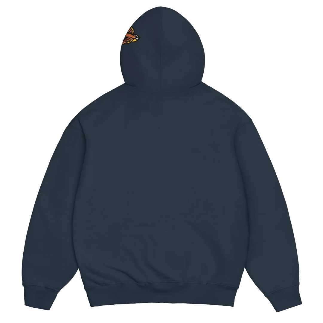 Hoodie double zip confortable, orné de broderies à l’avant et à l’arrière.
